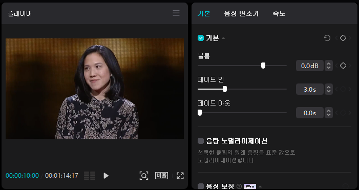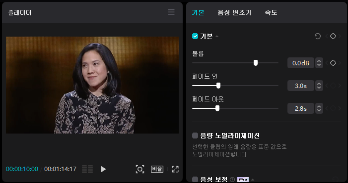 ☞ 음량 노멀라이제이션은 선택한 클립을 기본값으로 되돌려 줍니다.
