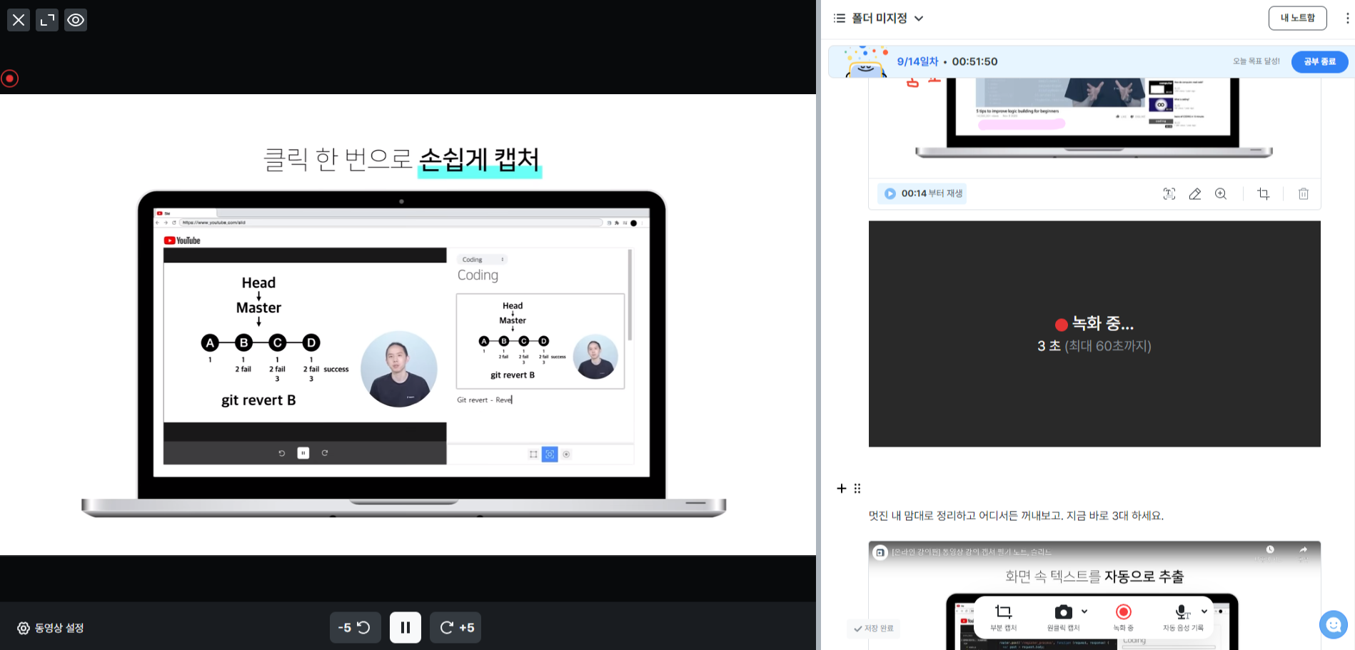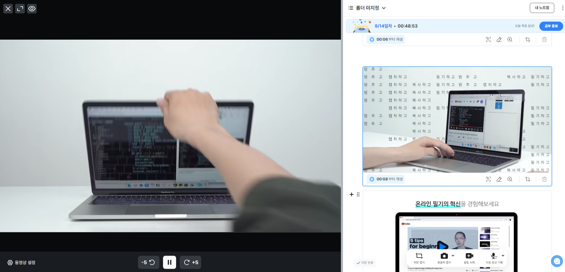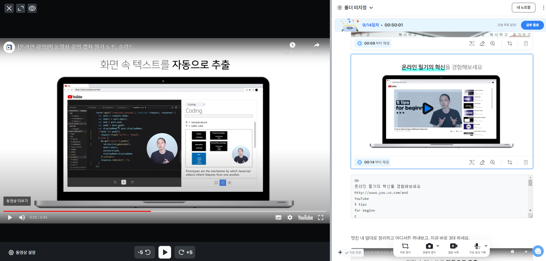 7. 영상을 시청하면서 필요한 내용을 "원클릭 캡쳐"로 캡쳐 합니다.
