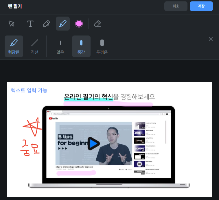 - 형광펜 기능