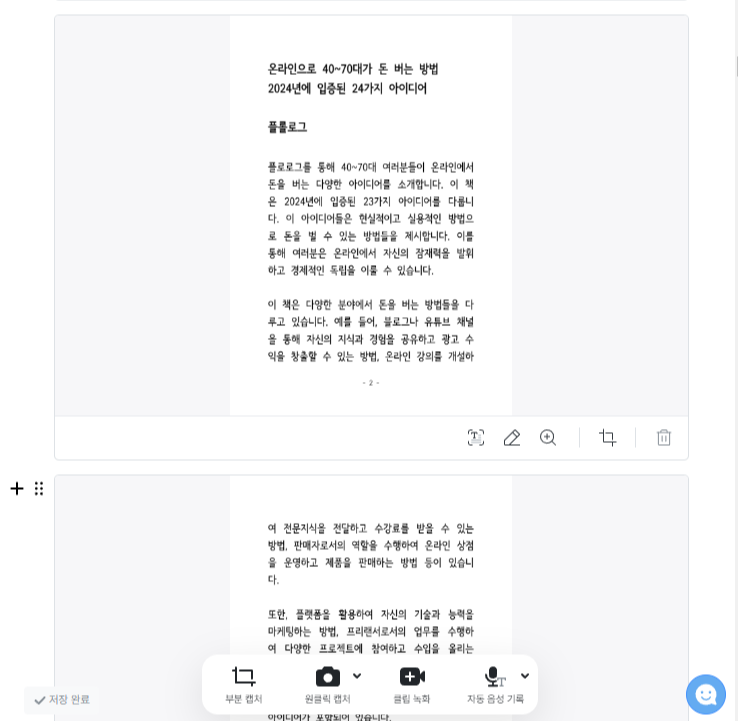 - 텍스트 추출, 펜필기, 확대/축소, 이미지 자르기 모두 가능